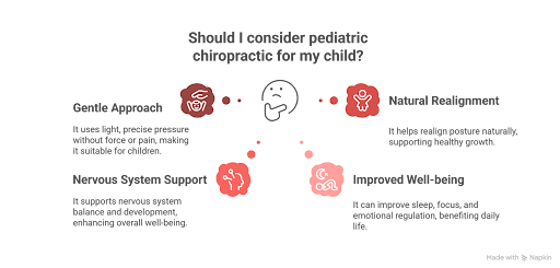 Yes! when provided by a licensed pediatric chiropractor, it’s extremely safe. The techniques used on children are vastly different from adult adjustments. There’s no cracking or force, just light, specific pressure tailored to a child’s developing spine and nervous system. Studies and clinical experience both support its safety and effectiveness in pediatric care. Plus, many kids enjoy their visits and feel calmer after sessions.