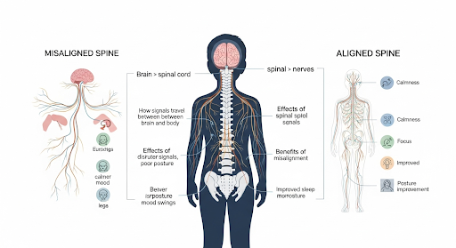 That’s because the spine and nervous system are closely linked. When the spine is misaligned, it can disrupt how the brain sends and receives signals, throwing off everything from focus to emotional regulation.