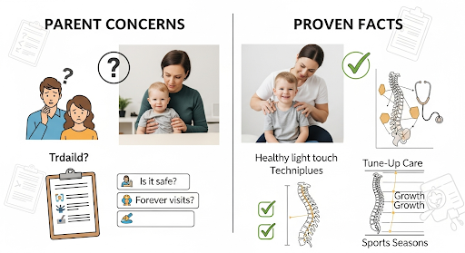 Not at all! Chiropractic care isn’t about creating dependency, it’s about early intervention and prevention. Most children come in during key growth stages, sports seasons, or times of increased physical or emotional stress. Think of it as tune-ups during times when their bodies are doing a lot of growing or adapting.