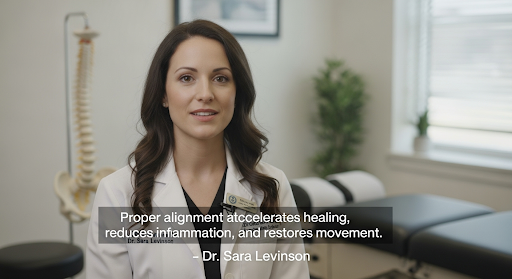 Dr. Sara Levinson, a board-certified chiropractor, notes, “When joints are properly aligned, healing accelerates. Nerve signaling improves, inflammation drops, and the body regains functional movement that’s critical after an injury.”