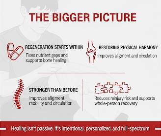 Functional medicine provides biochemical support for regeneration. Chiropractic care restores the physical harmony needed for movement. Together, they create a blueprint for deeper healing, one that isn’t just about going back to “normal,” but moving forward stronger.