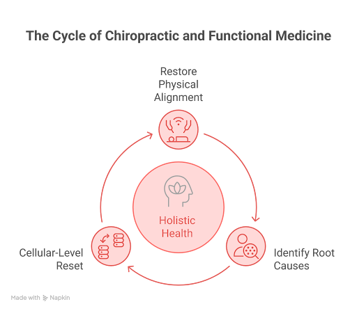 Functional medicine looks at the “why” behind illness. It addresses root causes through nutrition, lifestyle, lab testing, and personalized care working alongside chiropractic to heal your whole system, not just suppress symptoms.