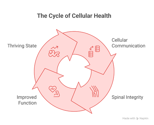 Each cell in your body is listening. It reacts to electrical signals, hormonal cues, inflammatory triggers, and structural support. If the spinal communication highway is congested, your cells operate in survival mode.